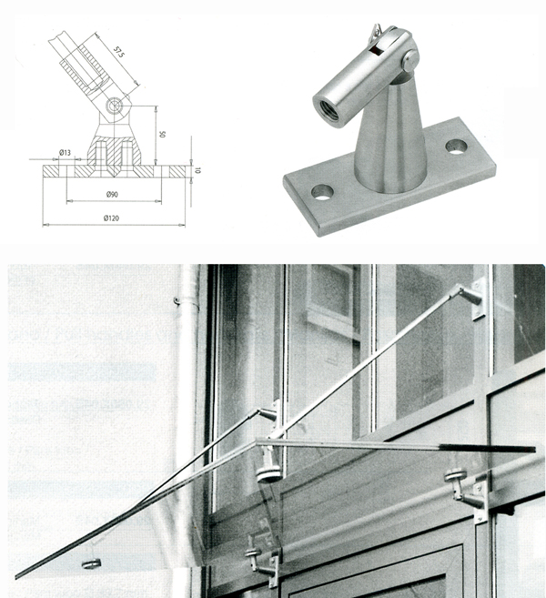 Pièce de soutien inox pour marquise, côté tige.