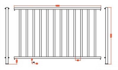 Vide entre barreau : 88 mm