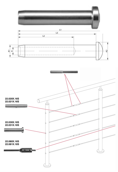 Embout traversant pour poteau et cable acier inoxydable Ø4mm.
