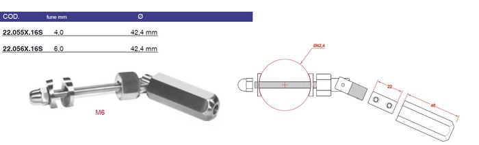Mandrin pour cable 6 mm - Réglable - Inox 316 - Tendeur Mandrin à visser 22-056X-16S