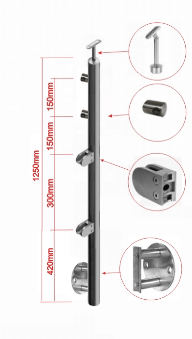Poteau inox de départ à droite pour extérieur A4 fixation latérale à l'anglaise.