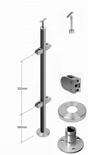 Poteau inox intermédiaire pour intérieur A4 fixation au sol.