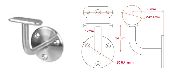 Support fixe - A4 brillant Marine Support main courante Supports Inox 06-010B-16M