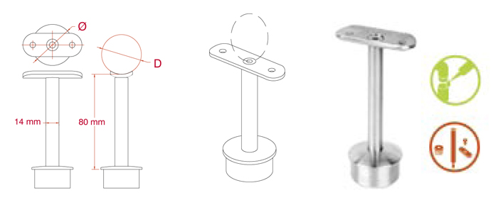 Il doit être emmanché dans le tube et collé. Il permet de supporter une main courante de Ø42,4mm de façon soignée et sans soudure.